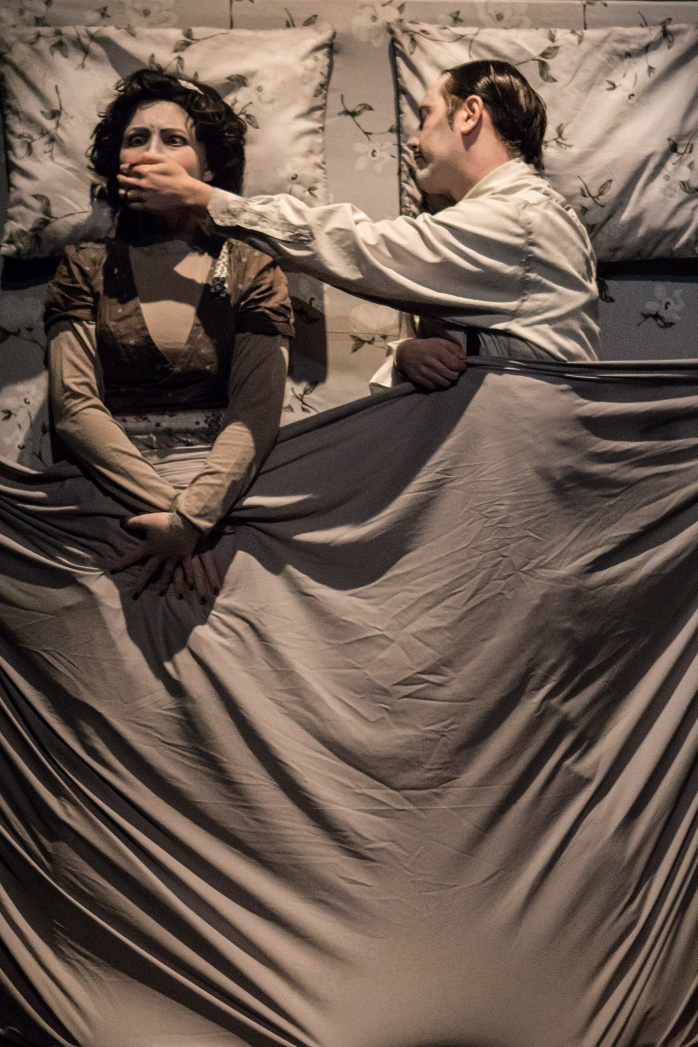 Qual o sentido de, em pleno século XXI, num espetáculo de circo-teatro, usar a linguagem do cinema de 100 anos atrás para contar uma história de opressão feminina passada em 1920? É que estas cenas seguem reencenadas na vida real, em todo canto, todas as classes sociais e orientações religiosas ou políticas. O espetáculo brinca que é cinema mudo em preto-e-branco, com trilha ao vivo feita por um pianista como os da época. Tudo pra fazer rir com Aurora, que tenta espremer a poesia possível do seu já murcho lar, nada doce lar. Porque a gente acredita que não há nada mais transformador que o riso – 23 séculos antes do cinema, Aristóteles já dizia disso. Só que usamos de referência um filósofo mais contemporâneo: o cítrico e genial cineasta Buster Keaton.