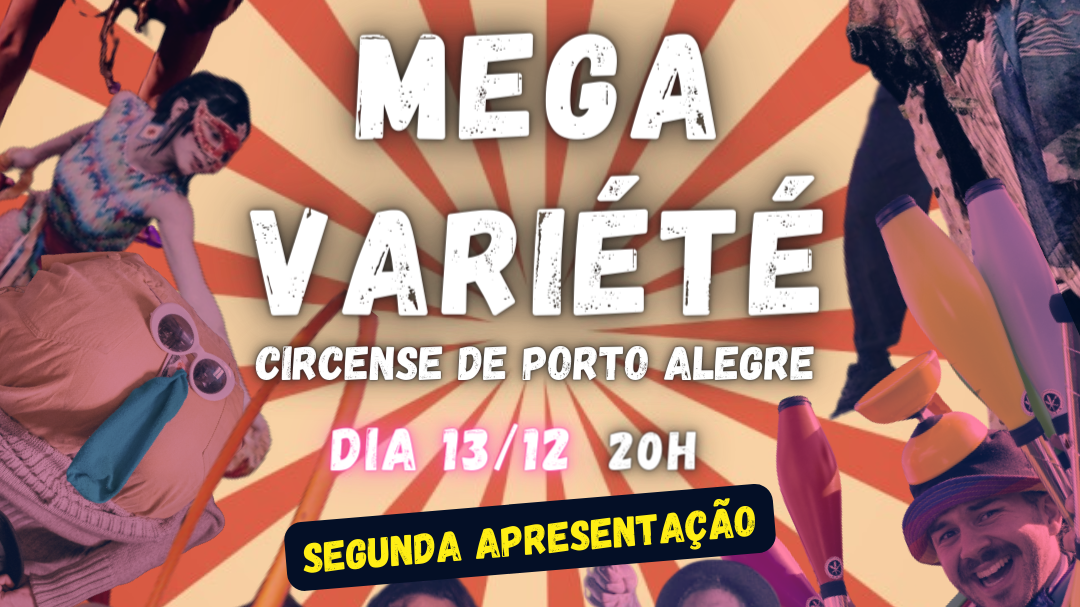 Artistas de Circo de Porto Alegre se encontram para mostrar o movimento circense da cidade juntando novos e experientes artistas circenses. O espetáculo mistura várias linguagens do mundo do circo. Veremos neste show: mágica, malabarismo, bambolê, acrobacia, equilibrismo, danças aéreas, palhaçaria e mais! Com tanta coisa bonita, essa vai ser a variété mais variada e animada que você já viu! Sempre com o nobre espírito circense de se ajudar e apoiar para fazer o espetáculo acontecer. O show tem que continuar! O espetáculo está marcado para as 20h.