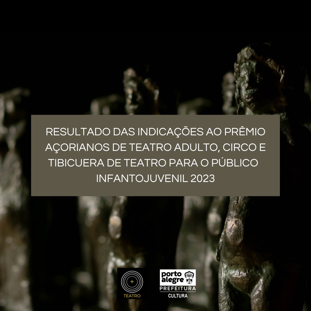 A Secretaria Municipal de Cultura e Economia Criativa, por intermédio da Coordenação de Artes Cênicas, torna pública a lista dos indicados ao Prêmio Açorianos de Teatro Adulto, Circo e Tibicuera de Teatro Infantojuvenil 2023: