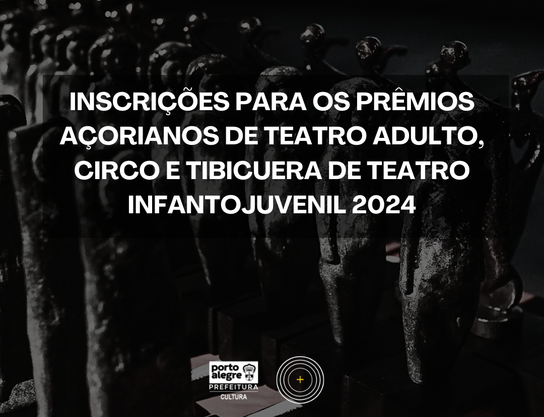 A Secretaria Municipal de Cultura e Economia Criativa/PMPA, por meio da Coordenação de Artes Cênicas, Dança e Circo, comunica aos interessados que estão abertas as inscrições aos Prêmios Açorianos de Teatro e Circo Adulto e Tibicuera de Teatro para público infantojuvenil – Edição 2024. A Premiação realizada anualmente pela Coordenação de Artes Cênicas, através da … Continuar lendo ABERTAS AS INSCRIÇÕES para os Prêmios Açorianos de Teatro Adulto, Circo e Tibicuera de Teatro Infantojuvenil 2024