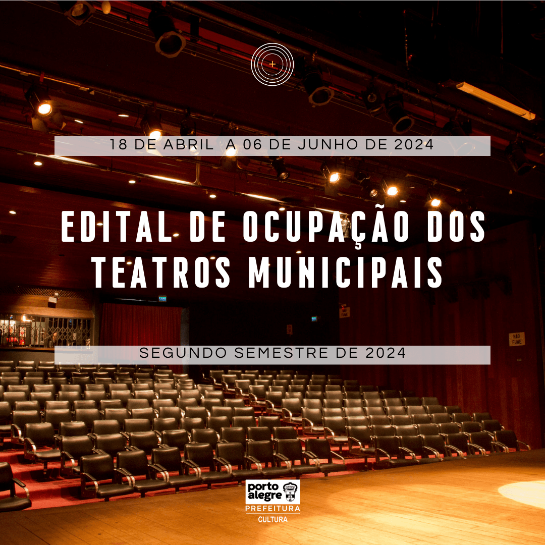 Estão abertas as inscrições para o segundo semestre do Edital de Ocupação dos Teatros Municipais 2024. No período de 18 de abril de 2024 até às 23h59 de 06 de junho de 2024 estará disponível o Edital para ocupação do Teatro Renascença e da Sala Álvaro Moreyra, com datas que serão oferecidas entre os meses de agosto e novembro do ano de 2024, para temporadas de TEATRO ADULTO e INFANTO JUVENIL, CIRCO, DANÇA e MÚSICA.