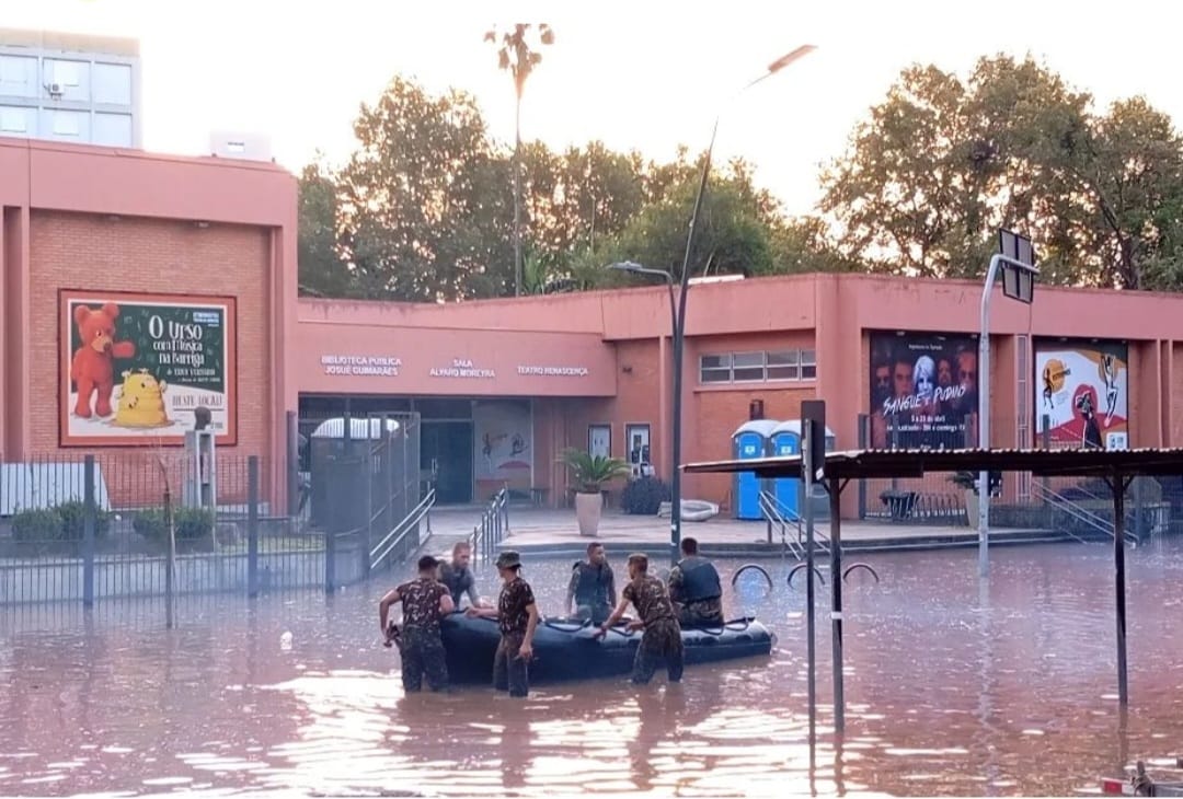 Devido ao alagamento na área do entorno do Centro Municipal de Cultura, neste momento, é impossível o acesso ao importante equipamento cultural. Uma inspeção realizada nesta terça-feira, 7, constatou, graves danos ao Teatro Renascença, Biblioteca Josué Guimarães e Atelier Livre Xico Stockinger, que foram tomados pela água. Os prejuízos estão sendo avaliados por técnicos da Prefeitura mas já se pode antecipar que houve grandes estragos ao teatro, atingindo o palco, equipamentos, poltronas e carpete. A Sala Álvaro Moreyra não foi atingida por ficar em um nível acima do Teatro Renascença.