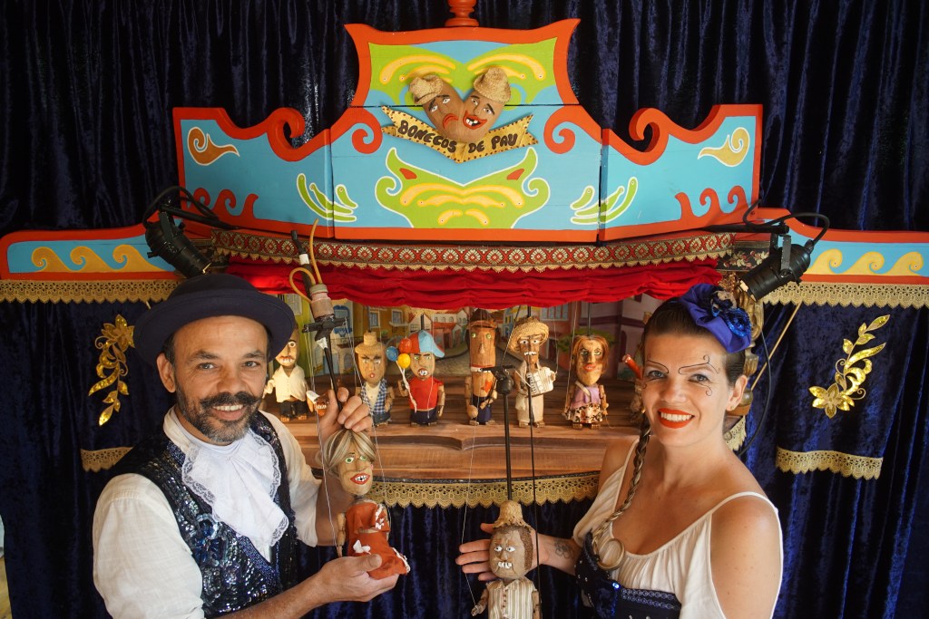 O espetáculo “Bonecos de Pau”, do Grupo A Divina Comédia, resgata o teatro de bonecos, unindo técnicas da Sicília e de Pernambuco, celebrando a cultura popular. A peça, focada em ecologia e acessibilidade, utiliza linguagem não verbal, inclusiva para deficientes auditivos e públicos estrangeiros. Com 8 esquetes e 14 bonecos feitos de madeira ecológica da Mata Atlântica, a apresentação mistura humor, reflexões ecológicas e um palco chamado retábulo, construído de madeira e tecidos coloridos, reproduzindo um palco tradicional da época das alegorias barrocas, com pano de boca, cortina romana, cenários pintados à mão.