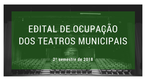 EDITAL DE OCUPAÇÃO DOS TEATROS MUNICIPAIS 2º SEMESTRE DE 2018 CURTO PERÍODO DE INSCRIÇÕES 25 A 29 DE JUNHO A Secretaria Municipal da Cultura comunica os interessados, que receberá no período de 25 junho a 29 de junho de 2018, os pedidos para ocupação do Teatro Renascença e da Sala Álvaro Moreyra, para o 2º semestre... Continuar Lendo →
