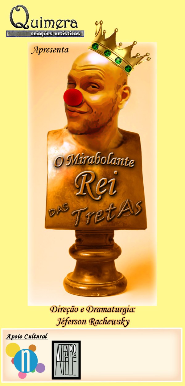 ◈ Onde: Sala Álvaro Moreyra ◈ Dias: 7 a 22 de outubro, sábados e domingos, às 16h . ◈ Duração: 60 minutos. ◈ Indicação: livre ◈ Entrada: R$ 30,00 “O Mirabolante Rei das Tretas” trata-se de um espetáculo dinâmico e divertido idealizado para as crianças de nosso tempo, mas que agrada ao público geral devido às situações hilárias que são apresentadas. É livremente inspirado na... Continuar Lendo →
