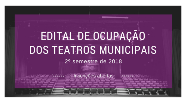 EDITAL DE OCUPAÇÃO DOS TEATROS MUNICIPAIS 2º SEMESTRE DE 2018 CURTO PERÍODO DE INSCRIÇÕES 25 A 29 DE JUNHO A Secretaria Municipal da Cultura comunica os interessados, que receberá no período de 25 junho a 29 de junho de 2018, os pedidos para ocupação do Teatro Renascença e da Sala Álvaro Moreyra, para o 2º semestre... Continuar Lendo →